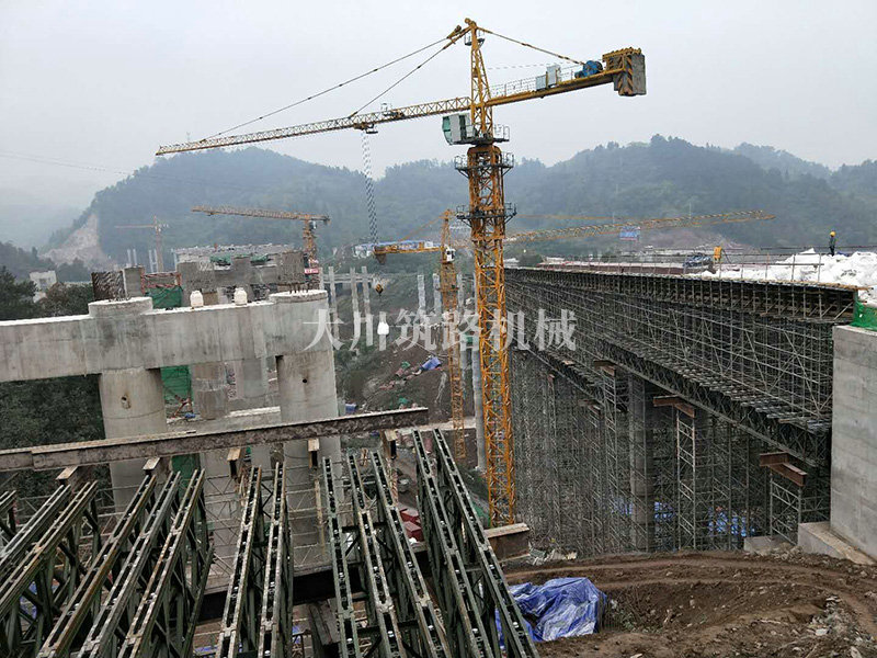 特點(diǎn):現(xiàn)澆梁支架平臺(tái)的跨度大,高度高,使用的貝雷片數(shù)量達(dá)到1808片,加強(qiáng)弦桿2800根,工程于2017年9月開始施工。