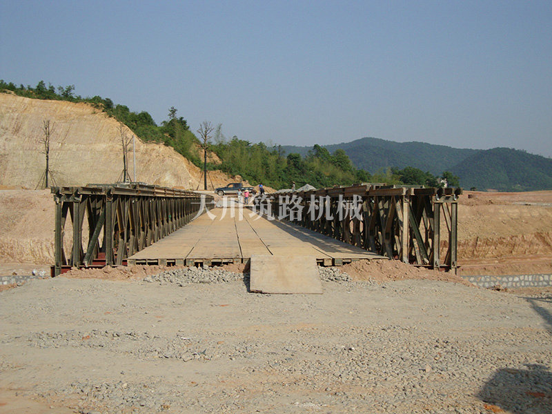 特點:本鋼橋由國防科技大學(xué)全程指導(dǎo)和監(jiān)督安裝,滿足荷載80T施工車輛通行,因施工場地要求,采用貝雷梁組合式橋墩,安裝拆除方便,穩(wěn)定性好。采用推出法安裝,安裝周期20天,于2011年5月25日通車。