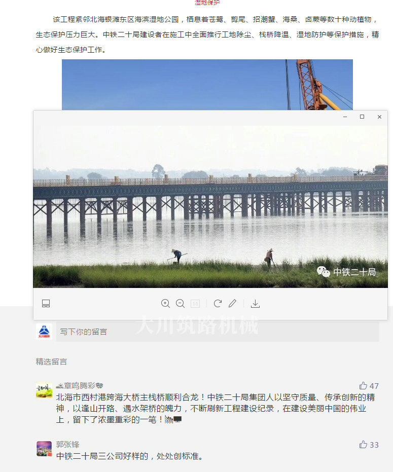 特點:2019年8月19日上午,在中鐵二十局承建的首座跨海大橋、廣西北海市跨海第一橋——西村港跨海大橋施工現場,北海市委宣傳部相關負責人帶領廣西日報、北海電視臺等6家媒體記者采訪一線建設者。采訪中,記者們對項目建設過程中的物資設備采購、極端天氣防范及大直徑群樁施工、大橋架梁技術等進行詳細了解,對中鐵二十局的標準化施工及工程質量給予充分肯定。